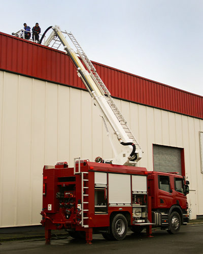 The compact dimensions of this multipurpose platform fire truck enable high maneuverability in narrow streets.